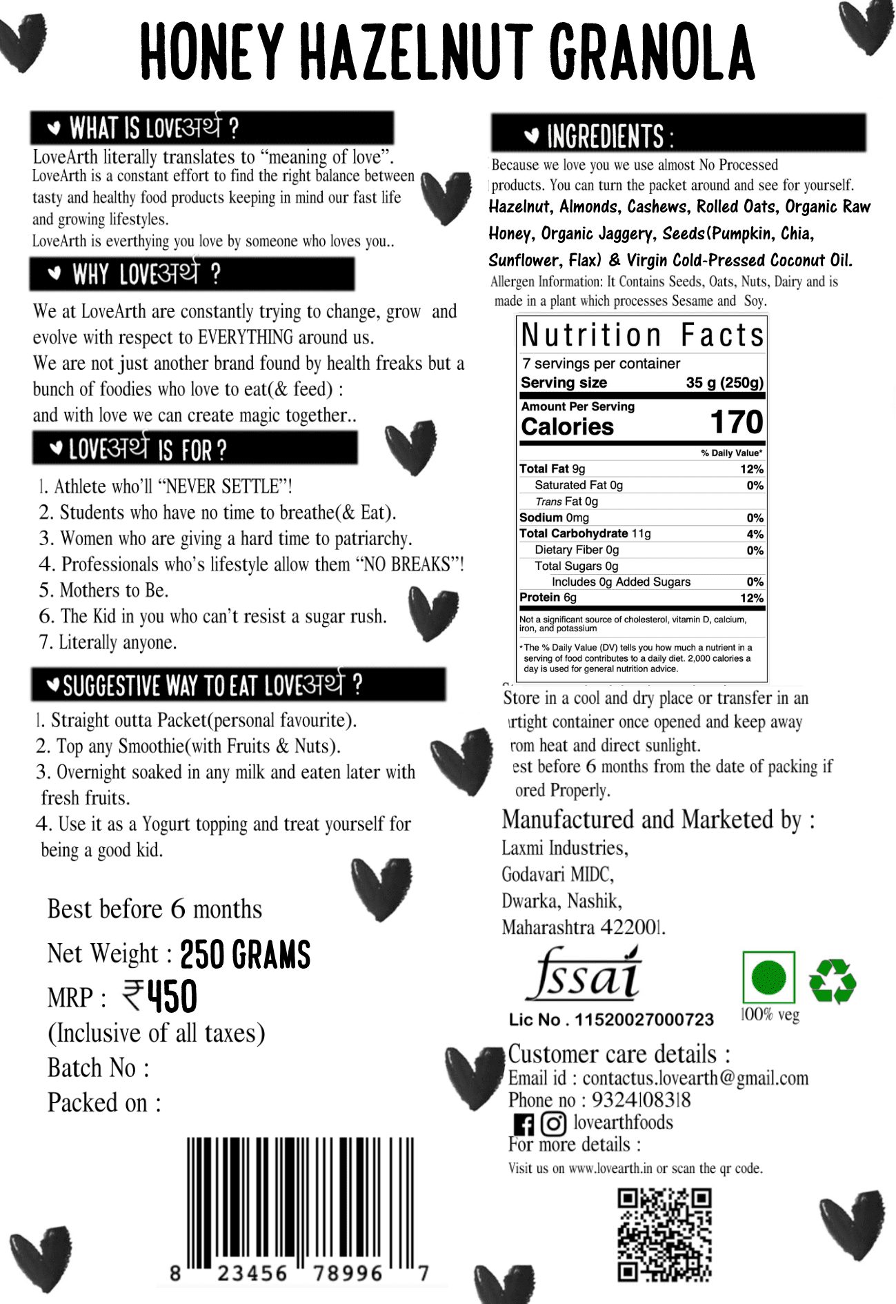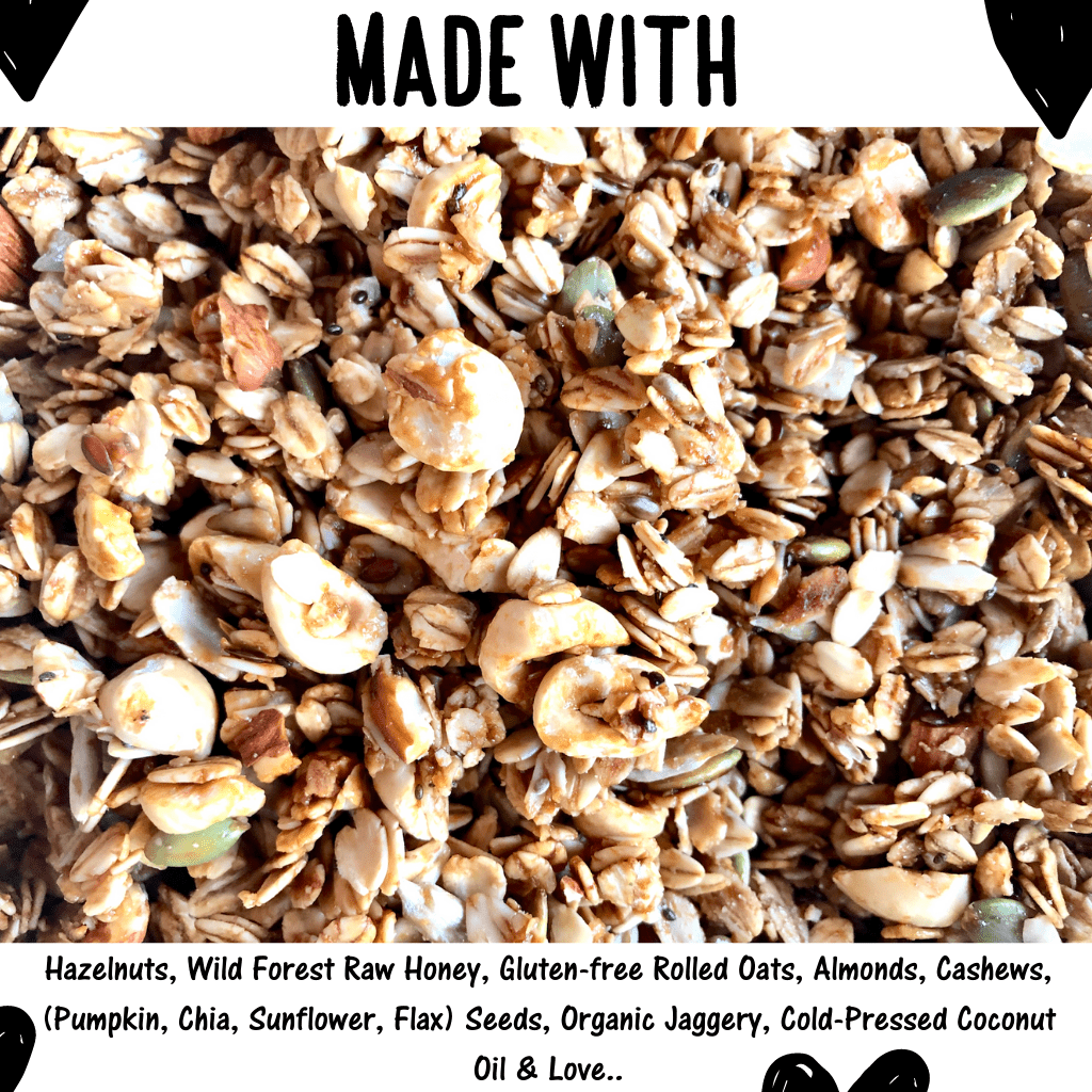 Sunflower), Raw Honey, Organic Jaggery, Cold-Pressed Coconut Oil & Love.